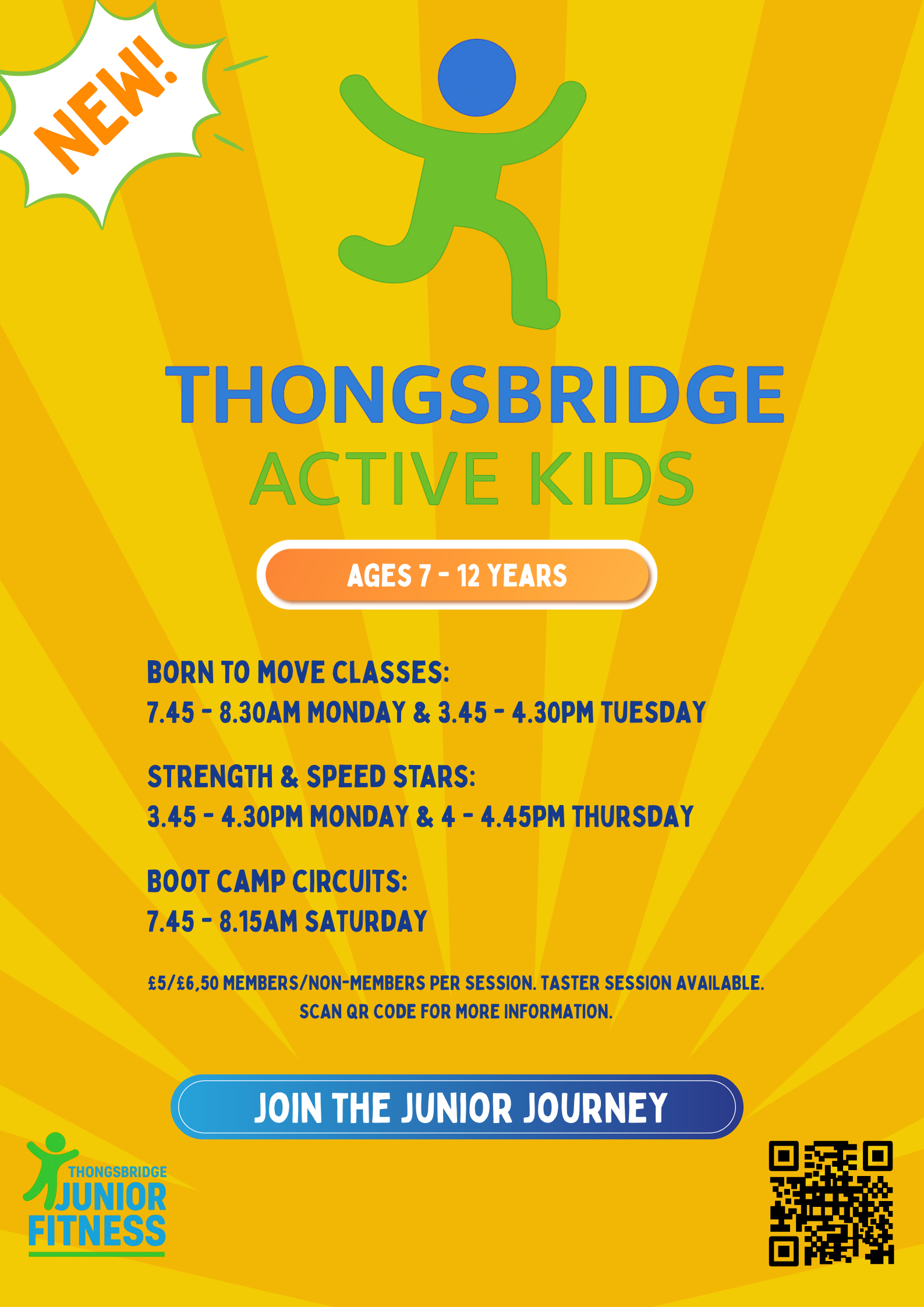 Our Junior Fitness Journey is designed to inspire and energise children aged 7–12 through a variety of fun and dynamic classes. From strength training and circuit sessions to exciting 'Born to Move' Les Mills workouts, each class is tailored to build confidence, coordination, and a love for movement. Sessions last between 30 to 45 minutes and are available before and after school to fit busy family schedules. All classes are led by qualified, DBS-checked professional coaches, ensuring a safe and supportive environment. Pay-as-you-go pricing makes it easy to join in, just £5 for members and £6.50 for non-members. Taster sessions are available, and booking online is recommended to secure your child’s spot. For any questions, feel free to speak to a member of our fitness team or ask at reception.