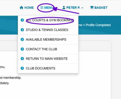 Once you have completed your basic information and you have accepted our terms and conditions, click on create an account. You will then be taken to your profile page where it will say your profile is complete. Go to the top of the page where you can begin booking Tennis courts, “Tennis Courts & Gym Bookings”. You will be asked to login with your new member ID and password, select your court, add to shopping basket and then make your payment. You can now use the same ID and password everytime you want to book a court.